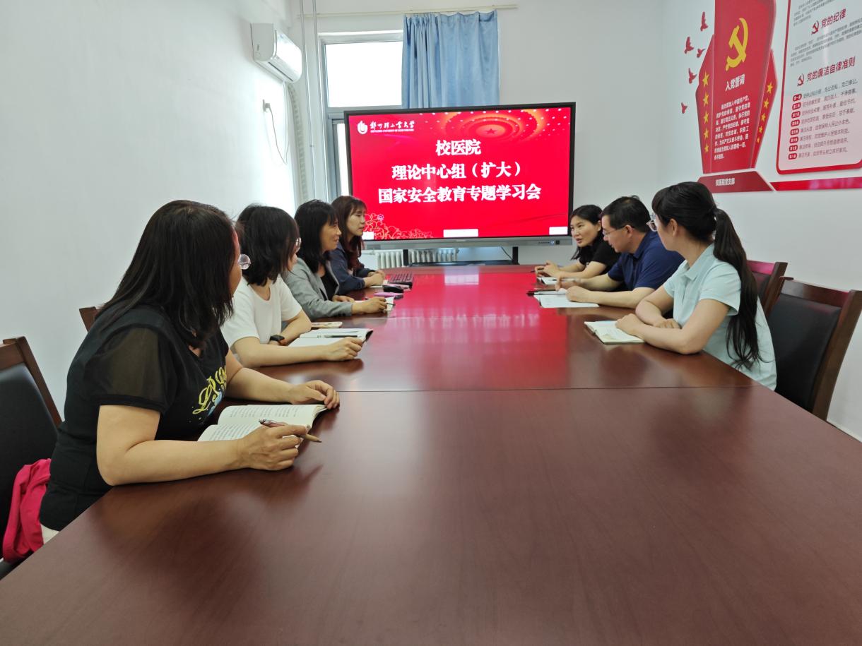 为提升校医院教职员工的国家安全意识,加强安全防范能力,4月25日,校医院直属党支部在科学校区党员活动室召开理论学习中心组(扩大)学习会暨院长讲国家安全教育专题学习会议。全体党员参会,会议由直属党支部书记陈勇主持。
