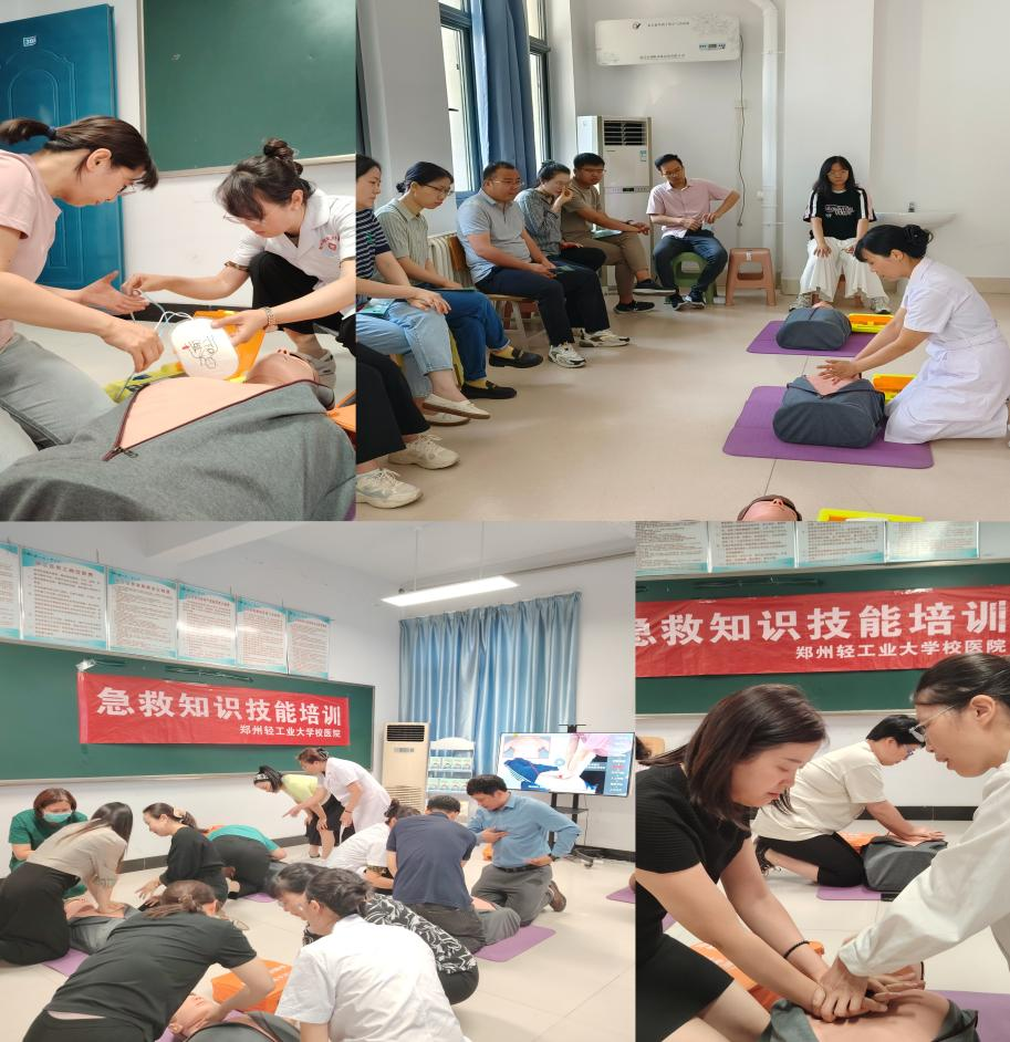 为进一步普及急救知识,提高教职工应急救护能力,全面提升校园急救素养水平,2025年6月5-6日,郑州轻工业大学校医院医务人员分两校区对学校能源与动力工程学院和国际教育学院的教职工们开展了四场急救教育知识技能培训,将实用技术与专业技能送到学院。